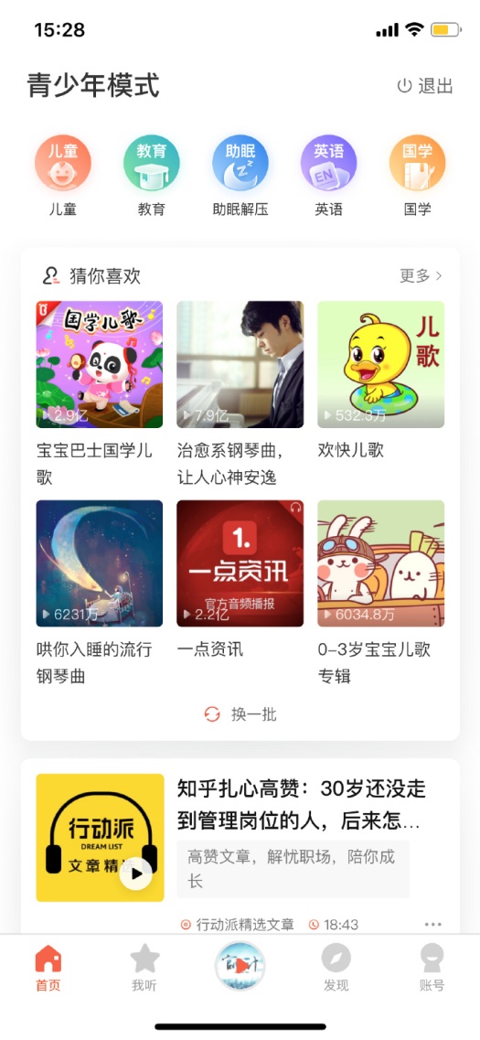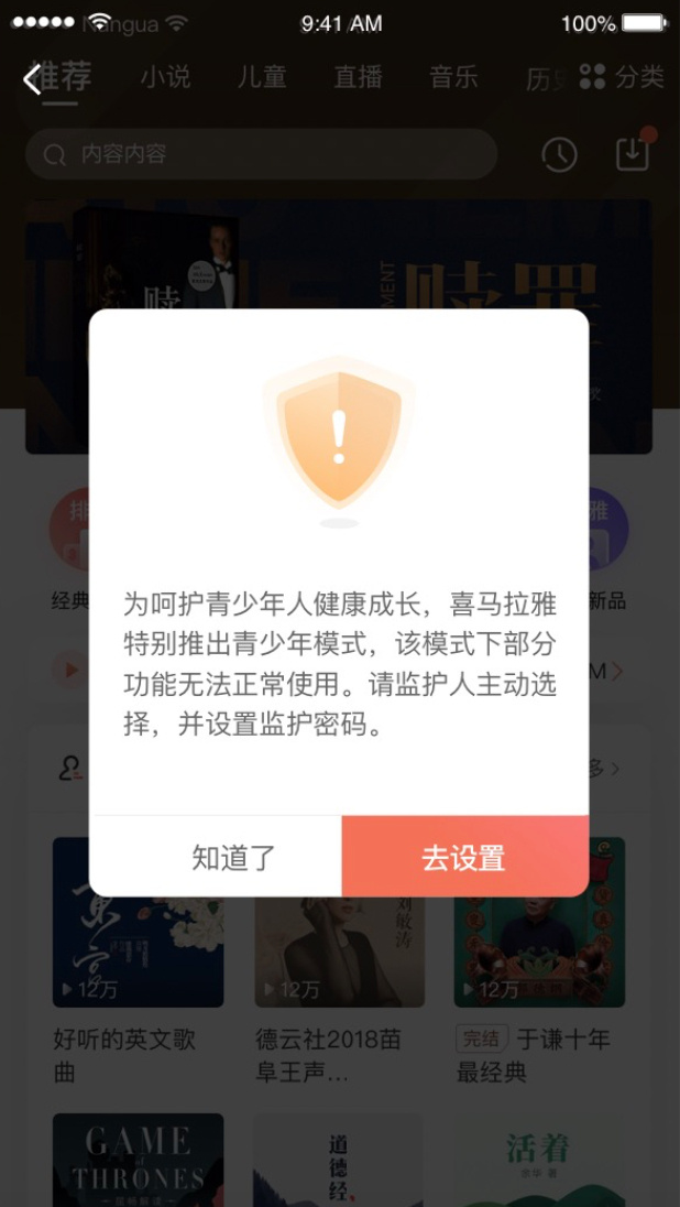 早在2018年,喜马拉雅就根据国家《未成年人保护法》、《网络安全法》等相关法律法规,为了保障青少年收听内容的可靠性,上线了青少年保护模式。目前,该模式已成为家长的得力助手,数十万用户开启、使用青少年保护模式。
