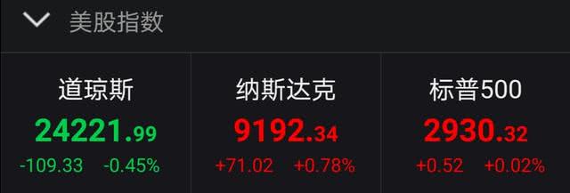 截止今早收盘,道指收跌0.45%,纳指收涨0.78%,标普500指数微涨0.01%。其中纳指录得6连涨,创年内最长连涨记录。