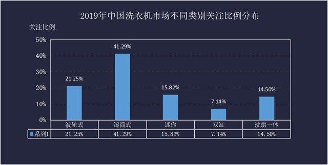 更大的洗涤容量意味着一次性可以洗涤更多的衣物,而从目前市场的关注及销售数据来看,滚筒洗衣机几乎占据了多半的市场,而购买滚筒洗衣机的消费者也多半是“居家”的稳定性较高的人群,很多用户也已经成家立业,因此在选择上更多的关注了大容量产品。