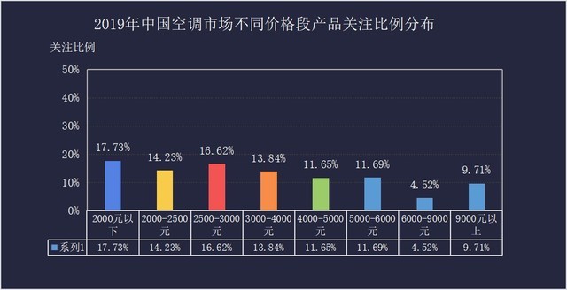 除了入门级市场难以撼动的高占比外,我们可以看到3000-6000元的中端市场的关注度也超过三成,虽然关注度不代表成交,但也能看出有很多消费者开始关注性能更好,功能更丰富的中高端产品。而今年9000元以上的高端空调的关注度依旧非常高,这其中势必有中央空调、大匹数空调的贡献,除此之外,一些超高端的空调的发布也成为该项关注度较高的主要原因。