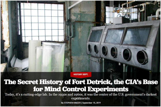 那会的德特里克研究基地,被这篇文章描述为“美国中情局精神控制的实验基地,也是美国政府最黑暗的实验中心”。