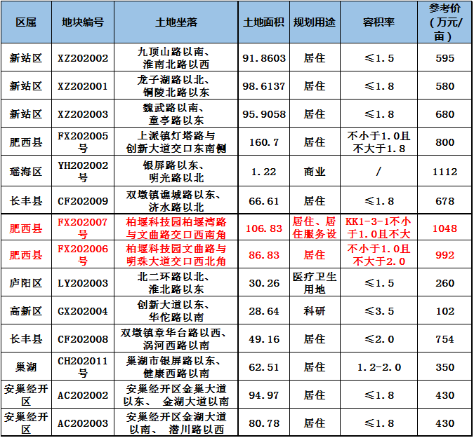 与之前土拍重头戏往往属于市区地块的形势相比,这次土拍的重头戏却是在县域。尤其是肥西柏堰科技园的两宗地,位置、面积、价格都是看点。