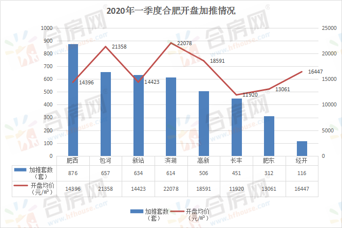 日前,据合房网内容中心不完全统计,2020年第一季度共39家楼盘推出房源约4306套,同比减少16.5%。在价格方面,一季度合肥开盘整体均价16634元/O,同比去年下跌1.5%。