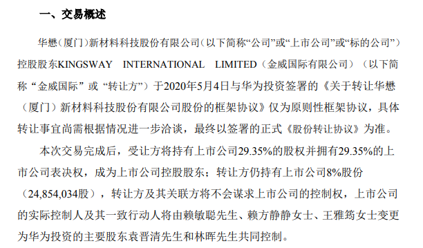 总结来说,就是资金不到位、正式协议未签、新实际控制人没有任何投资经验,我们有的,就是华为两个大字。