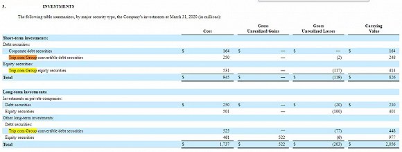 截至2020年3月31日,Booking集团对携程可转换优先债券已投资了7.75亿美元,这批债券的到期日在2020年5月至2025年12月间。不含2020年5月到期的可转债,Booking集团对携程可转换优先债券的战略投资被列为“长期投资”。