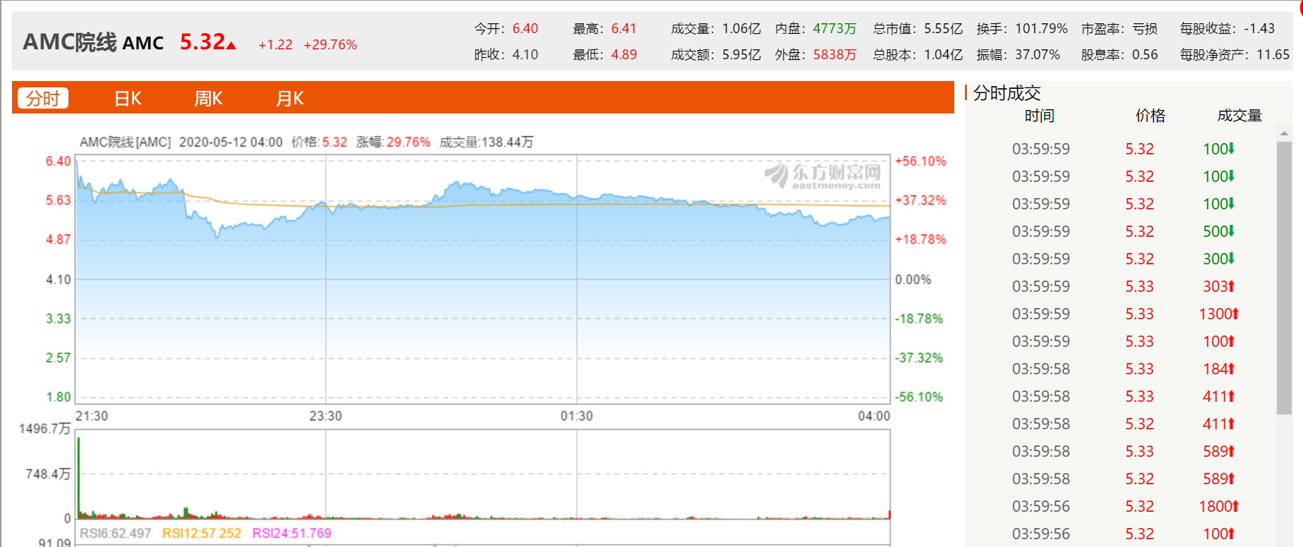 5月11日,万达旗下AMC院线(NYSE:AMC)美股盘前涨超80%。当天,有外媒报道称,亚马逊(Nasdaq:AMZN)正在考虑收购这家影院运营商的可能性。