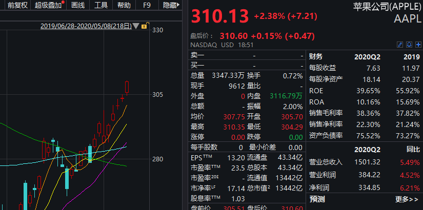 美国大型科技股多数上涨,苹果涨2.38%,亚马逊涨0.51%,奈飞跌0.22%,谷歌涨1.1%,Facebook涨0.52%,微软涨0.59%,特斯拉涨5.05%。