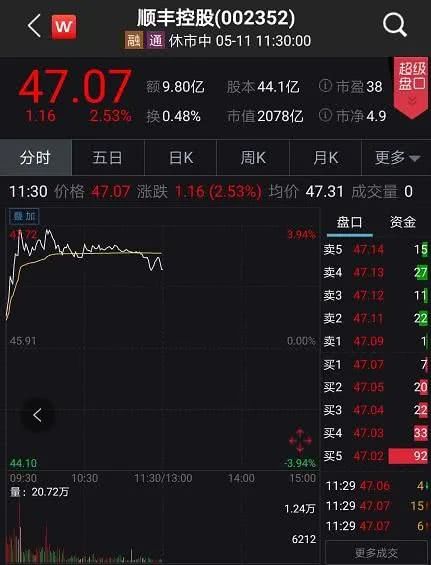 5月11日,顺丰控股开盘高开高走,股价盘中猛飙近4%,市值突然大增80亿,目前总市值超2000亿。相应的,港股美团点评开盘冲高后意外回落。快递大佬进场搅局,美团真的要慌了?