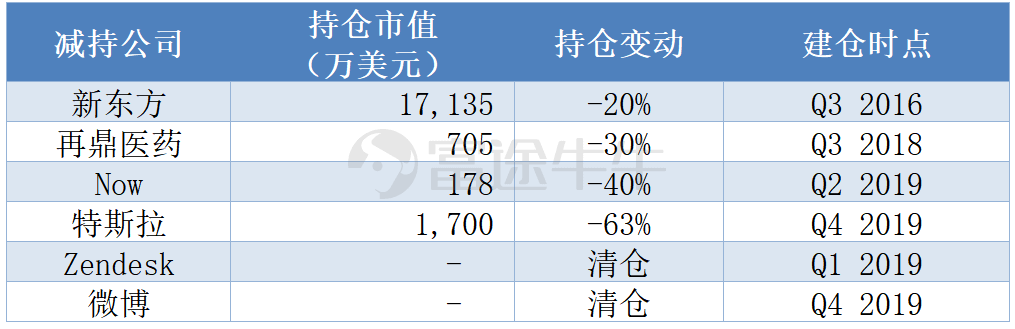 此外,被减持的股票还有再鼎医药、美国云计算公司NOW,以及特斯拉。