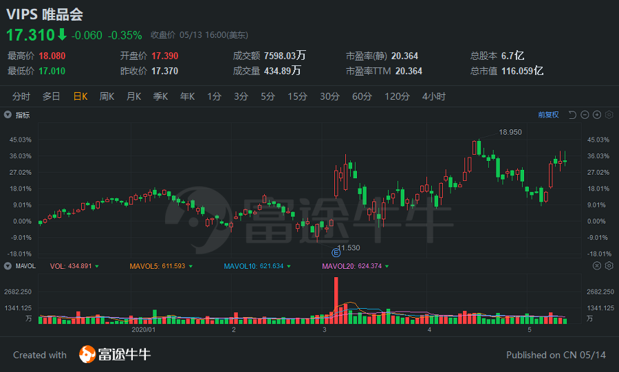 在上一篇分析景林19年四季度末持仓的文章中(点击回顾),富途资讯着重介绍了得到325%增持的唯品会。至今,唯品会已经录得16%涨幅,其中3月5日受财报利好刺激,单日暴涨近27%。