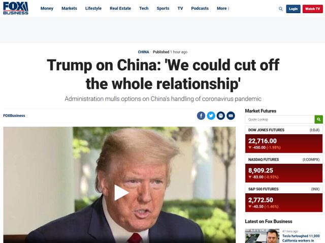 “特朗普威胁要结束与中国的整个关系,荒谬……接下来:美国切断了与特朗普的整个关系”
