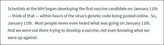 1月11日,开始研发,这比3月中旬美国新冠疫情暴发整整早了2个月。