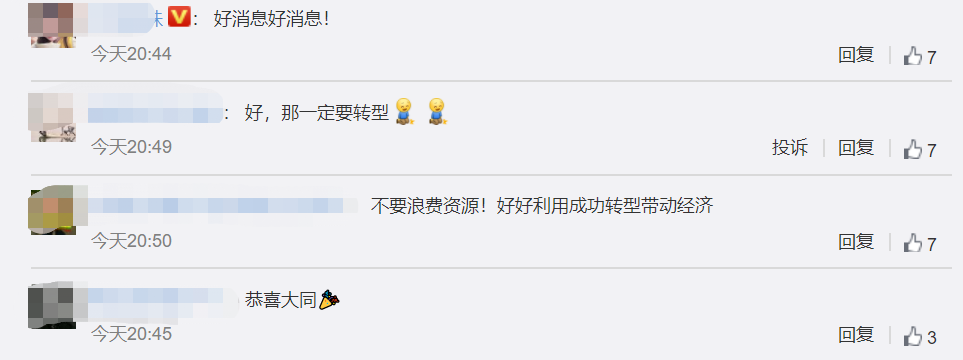 2019年,大同全年退出煤炭落后产能135万吨,煤炭先进产能比重占到71.5%;同时又推进中海油煤制天然气、隆基光伏全产业链、城市动力储能电池制造等支撑能源革命的重大转型项目。