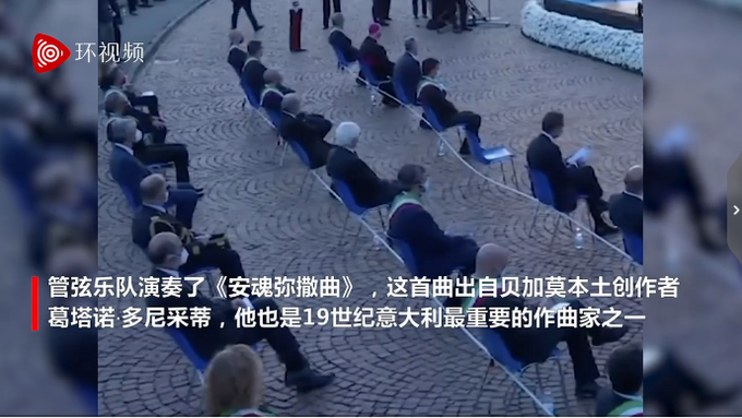 据美联社报道,当地时间6月28日,意大利在贝加莫公墓的入口处举办了安魂曲音乐会,以致敬新冠疫情的受害者。
