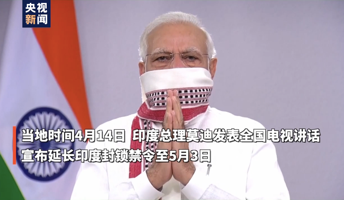 印度总理莫迪宣布延长全国封锁令至5月3日。