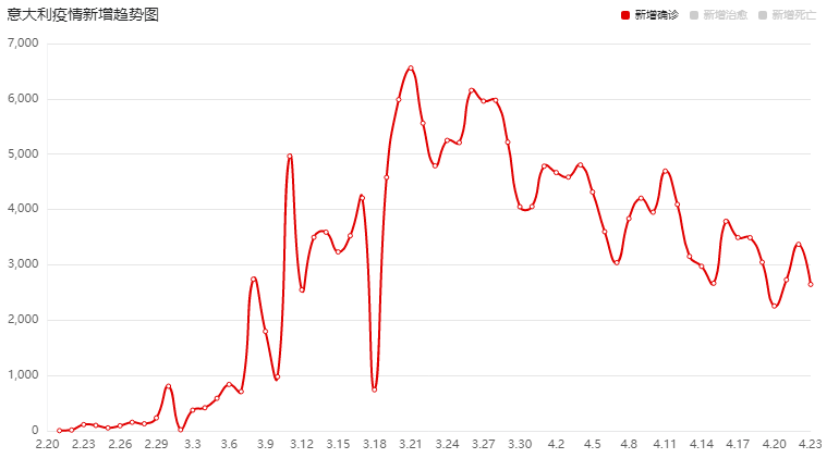意大利新增病例曲线图。