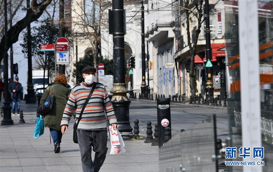 3月30日,在土耳其伊斯坦布尔,市民佩戴口罩出行。新华社记者 徐速绘 摄