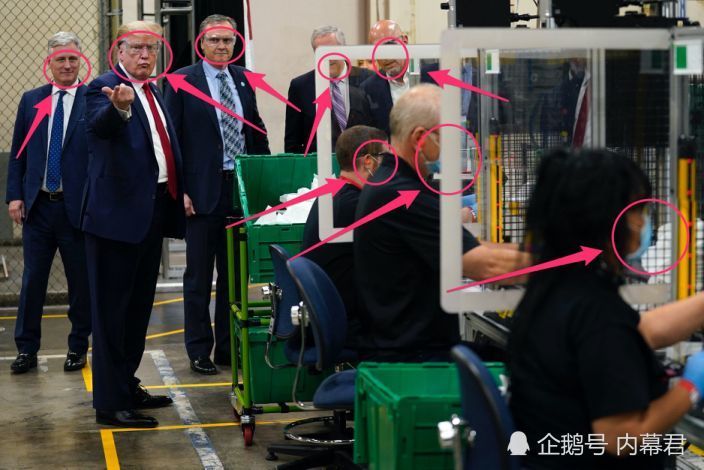 图为特朗普此前不戴口罩访问霍尼韦尔口罩厂。