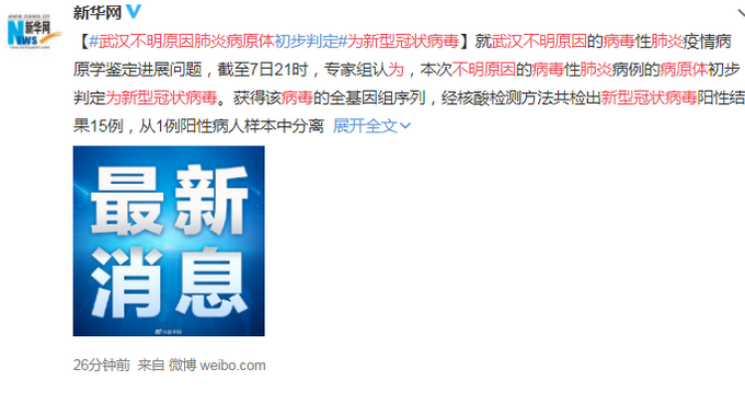 专家组认为,本次不明原因的病毒性肺炎病例的病原体初步判定为新型冠状病毒。