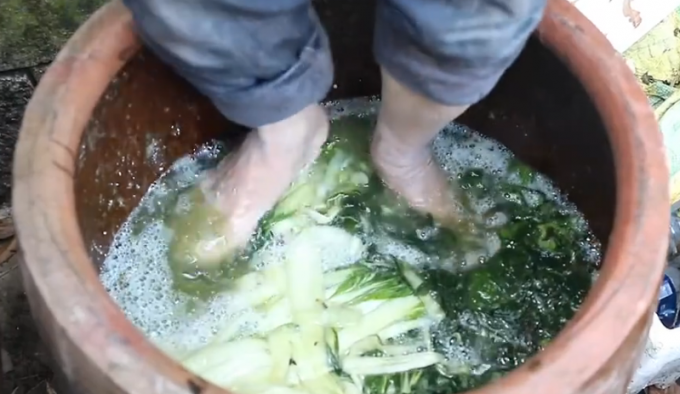 在杭州西湖茅家埠村,村民像往常40多年一样准备着冬腌菜,在视频中,只见一位大叔赤脚踩着缸里的长梗白菜。另有其他老人说,这种食物要用脚踩才好吃,属鸡的汗脚最佳。