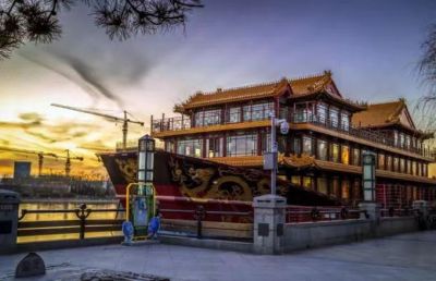 杜智广 摄 据说,是按当年康熙、乾隆皇帝下江南时的龙船仿制,如今已是一家餐厅,名为“南门涮肉”。