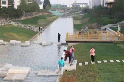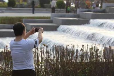 甘南 摄 不远处的河水清澈见底,好多当地居民沿着河道悠闲散步。听说,这是经过整改治理后的,原先是周边出了名的“牛奶河”。
