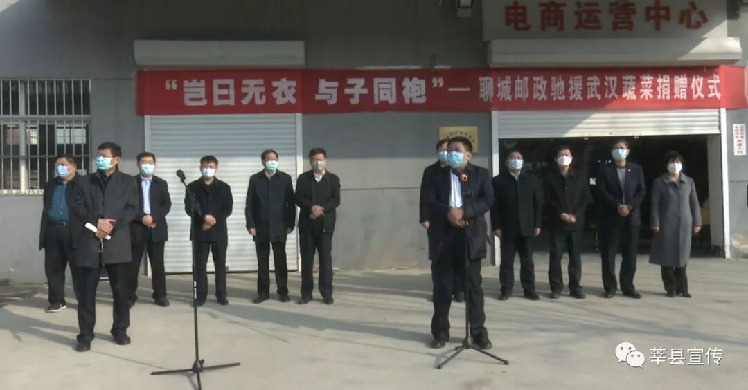 随后,任晓旺一行出席聊城邮政驰援武汉蔬菜捐赠仪式。捐赠现场,任晓旺对于聊城邮政无偿捐赠10吨新鲜蔬菜驰援武汉的举动表示衷心感谢,并为即将奔赴武汉的人员发放隔离物品,希望他们注意自身安全。