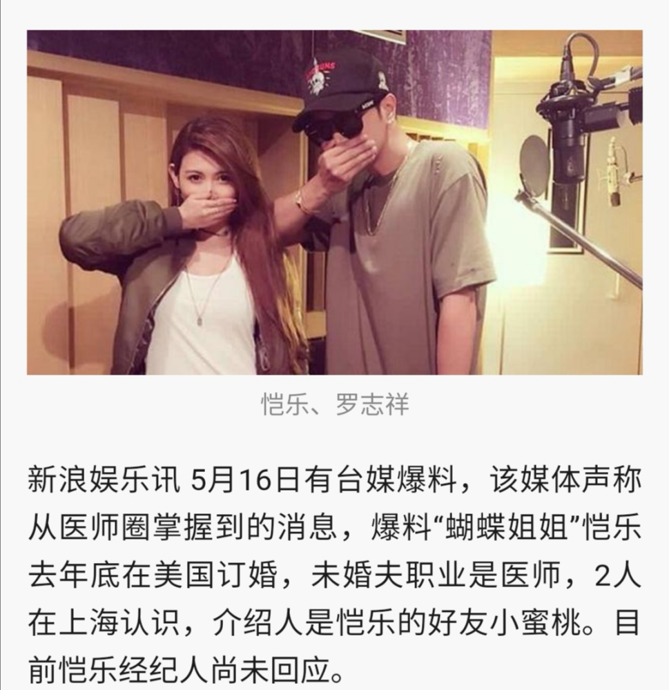 对于蝴蝶姐姐订婚的消息,经纪人尚未回应,但是爆料者连未婚夫的职业都知道,还知道两个人是在上海认识,介绍人是简恺乐的好友小蜜桃,证据有点多,如果是假的肯定会出来辟谣吧。