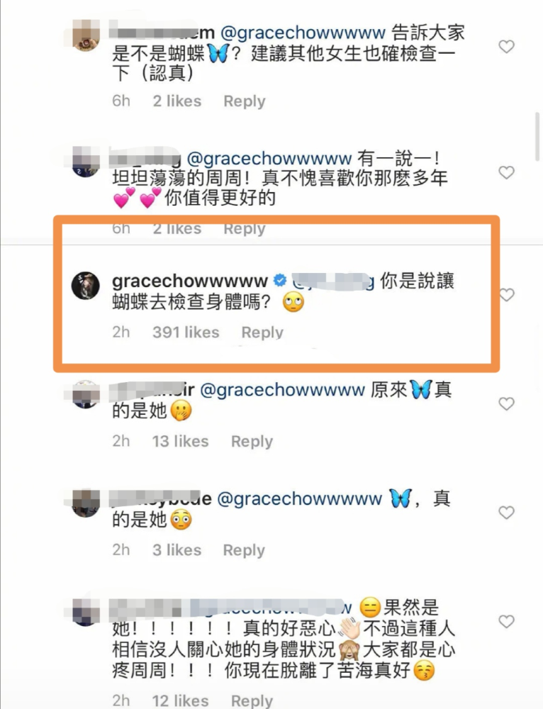这一度让人搞不懂,周扬青在分手的文案中有写到罗志祥除了撩其他的女生,身边的女性也不放过,他们都有很亲密的关系,而简恺乐就是其中之一,在周扬青分手后有网友建议她去做一个身体检查,周扬青称自己分手后就去做检查了,没有问题,后她又回答网友的评论,反问道要让蝴蝶姐姐去检查身体吗。