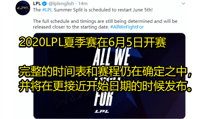 令人意外的是,这次夏季赛似乎又往后推迟了一段时间。之前其实有消息表示,夏季赛会在5月23日开始,没想到现在确定变成了6月初。不过当时MSI季中赛还没有确定是否取消,所以官方才想让夏季赛早点开始,现在MSI季中赛已经不举办了,官方自然要重新安排赛程,否则等夏季赛打完之后,离世界赛又有很长一段时间空档期。
