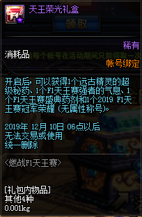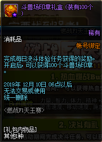 作为DNF的核心赛事,F1天王赛活动的奖励也与PVP息息相关。在活动期间完成决斗任务,可以获得斗兽场印章礼盒。