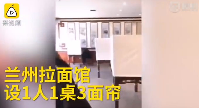 拉面馆将桌子距离保持在2米左右,一人一桌单独吃饭,每张桌子用三面布帘子遮挡,这样避免食客的聚集和飞沫传播,吃饭比较安全。有顾客调侃:在这里吃饭吃出了进京赶考的感觉。