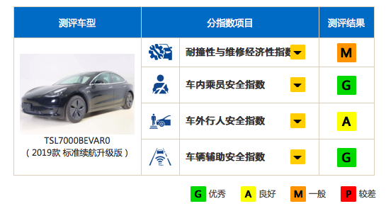 2020年6月10日,中国保险汽车安全指数管理中心公布了特斯拉(上海)有限公司生产的特斯拉牌Model 3车型TSL7000BEVAR0(2019款 标准续航升级版)的车型测试评价结果。
