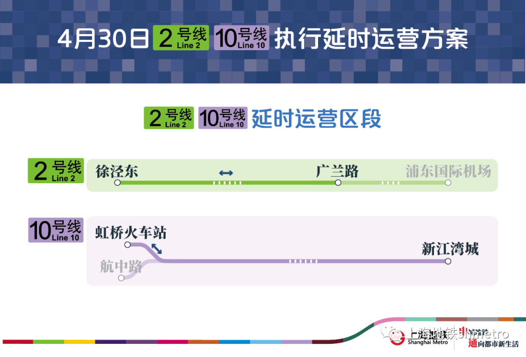 4月30日(周四)为“五一”小长假前最后一个工作,当天上海地铁2、10号线执行延时运营方案。