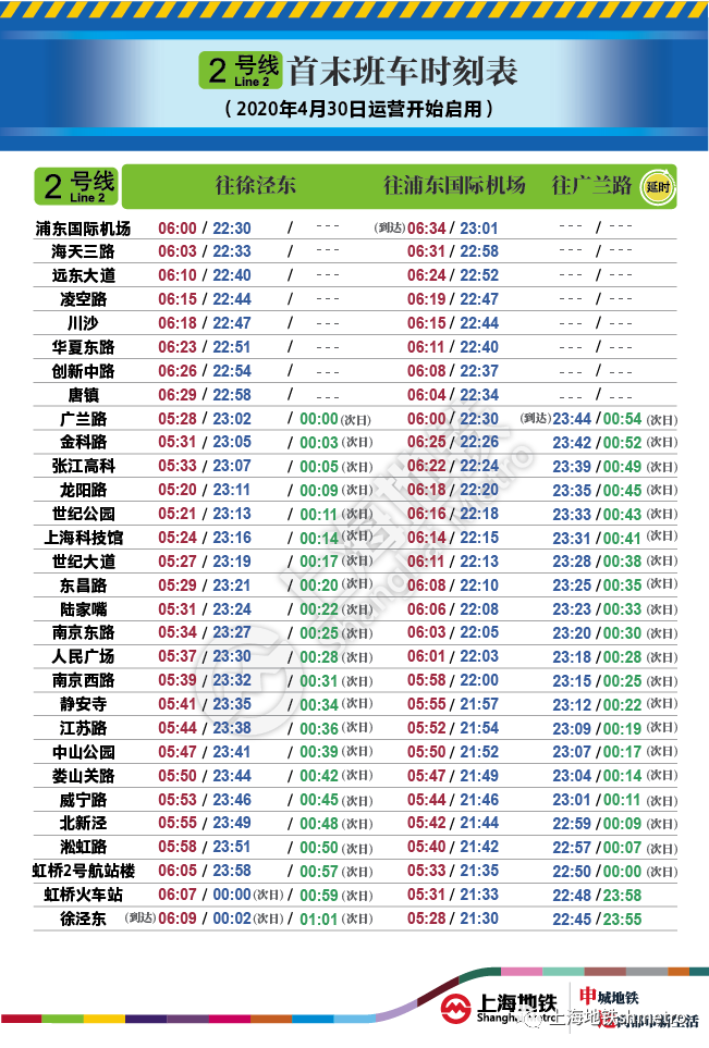 5月1日起,2号线将恢复常态周五、周六延时运营。届时,上海地铁2号线、10号线,两线执行常态周五、周六延时运营方案,而其他线路暂不执行常态周五、周六延时运营。