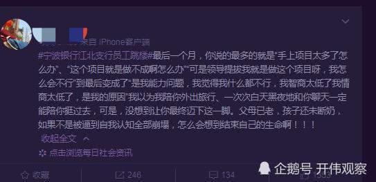 原标题:宁波银行员工自杀身亡 还有哪些问题值得全社会深刻反思? 来源:开伟观察