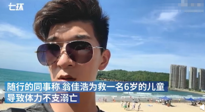 台州新闻网此前报道,翁佳浩出生于1998年,椒江区洪家街道后高桥村人,是退伍军人、预备党员,现在广东省惠州市一家物流企业工作。6月26日,趁着端午假期,翁佳浩和三位同事来到深圳市深汕合作区鲘门镇百安村海滩度假,当天下午,翁佳浩失联,后在当地海警、渔政部门和村民搜救下,翁佳浩的遗体于28日下午6时在事发海域打捞上岸。