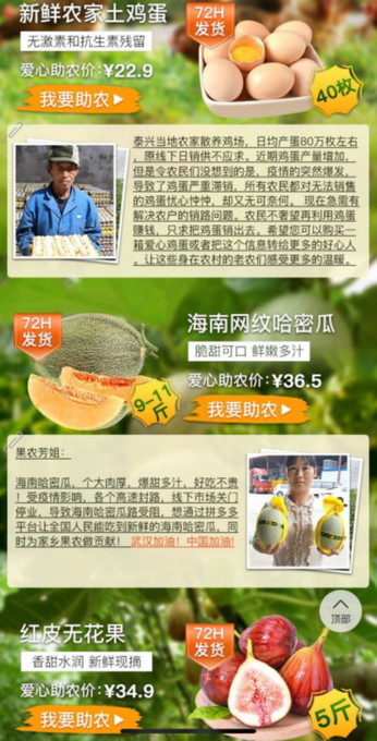 2月10日,拼多多正式上线“抗疫农货”专区,帮助贫困地区和部分农产区解决特殊时期的农产品滞销问题。用户通过APP首页焦点图、限时秒杀等入口,以及搜索“助农”、“爱心助农”、“农货”等关键词,均可直达该专区,以最优惠价格购买产地直发的水果和蔬菜。